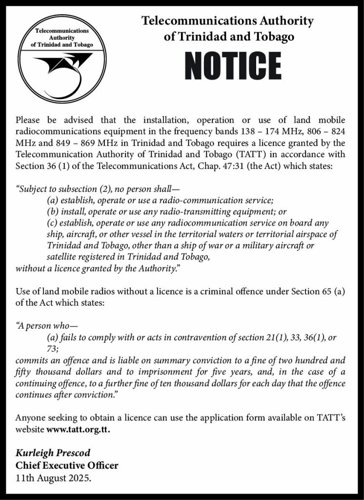 The Telecommunications Authority of Trinidad and Tobago (TATT) will host its annual “Empowering Men with Digital Skills: Unlock Your Potential” event on Saturday, 6th September 2025, from 9:00 a.m. to 3:00 p.m. This year’s theme is Level Up Your Voice – The Ultimate Podcasting Workshop.