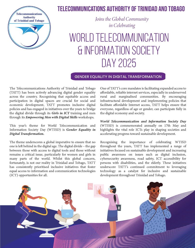 The Telecommunications Authority of Trinidad and Tobago (TATT) will host its annual “Empowering Men with Digital Skills: Unlock Your Potential” event on Saturday, 6th September 2025, from 9:00 a.m. to 3:00 p.m. This year’s theme is Level Up Your Voice – The Ultimate Podcasting Workshop.