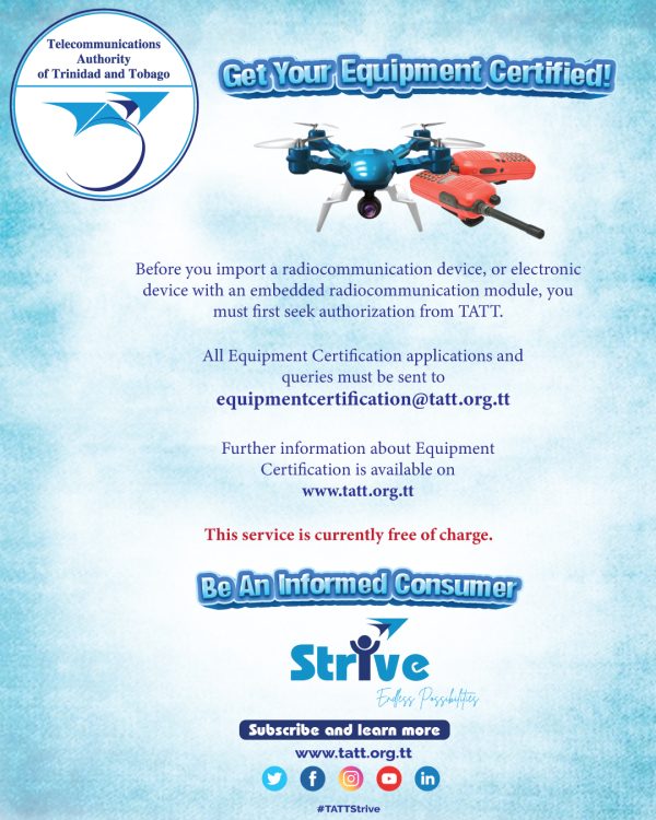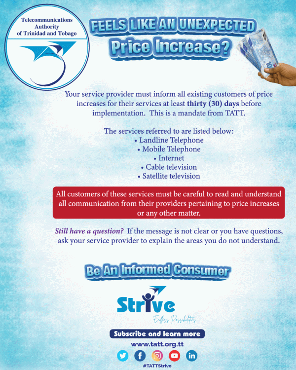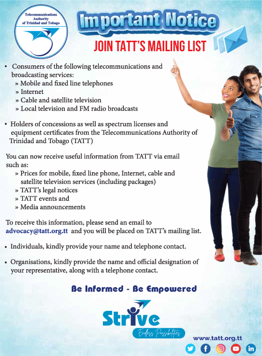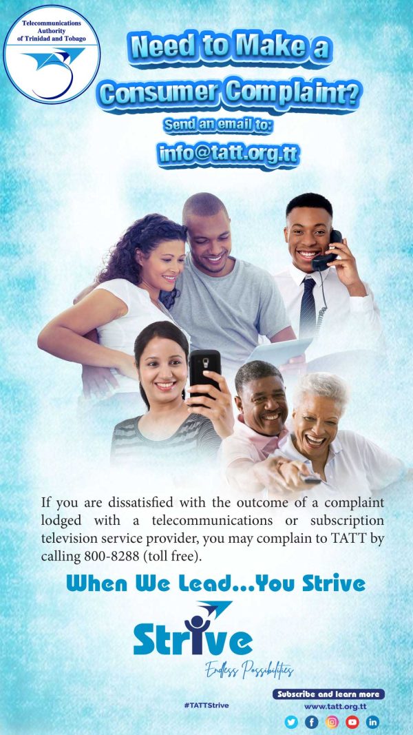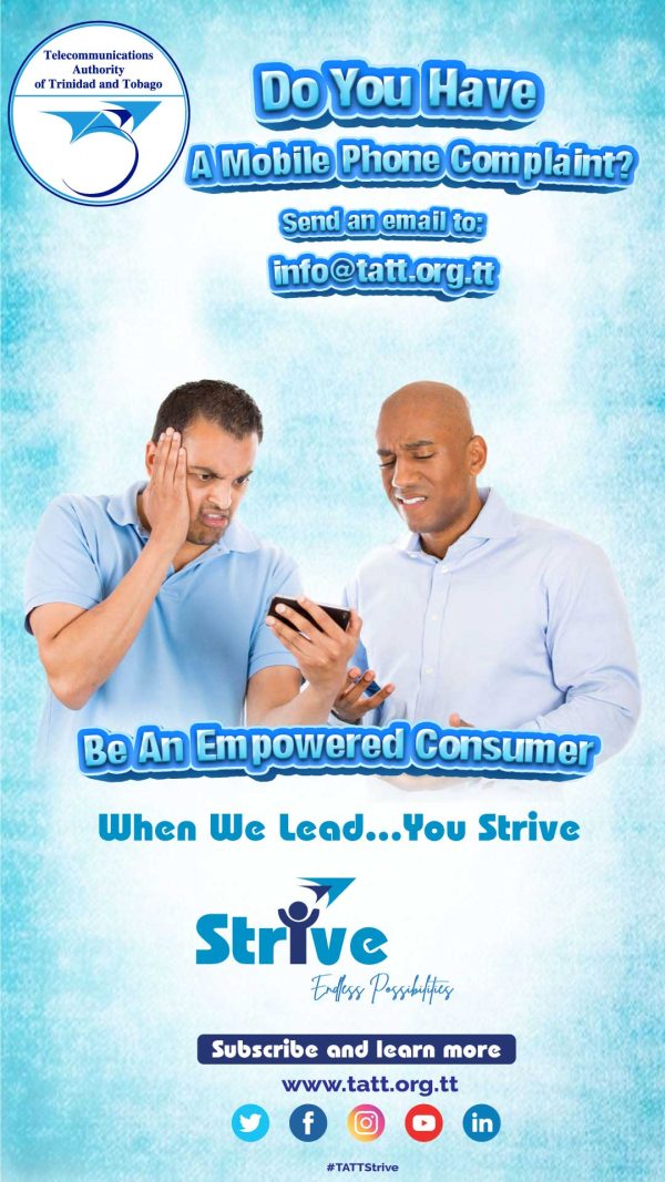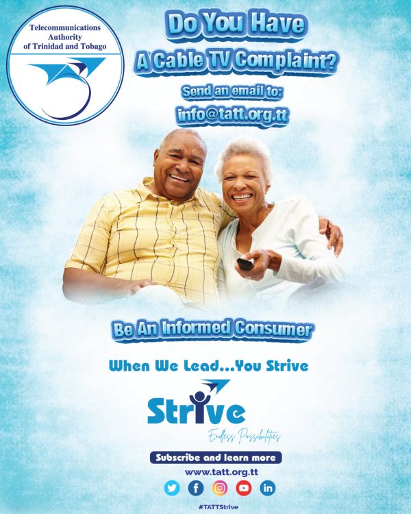 TATT is committed to being a leading ICT regulator, enabling an empowered and connected society, with the invaluable support of our stakeholders. The objective of the Strive campaign is to raise awareness of TATT’s activities. We will continue to strive in all our endeavours to create endless possibilities for the National Community whilst using telecommunications and broadcasting services in this digital era.